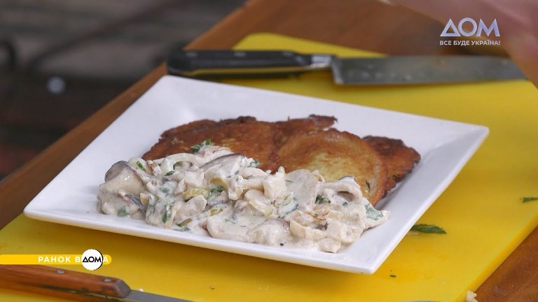 Деруни з грибним соусом по-закарпатськи